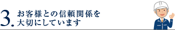 創業当時より、お客様ひとりひとりに真心を込めて接し、深い信頼関係を築くことを大切にしております。その信頼により、お客様からのご紹介や建設関連企業からのご依頼など、多数いただいております。